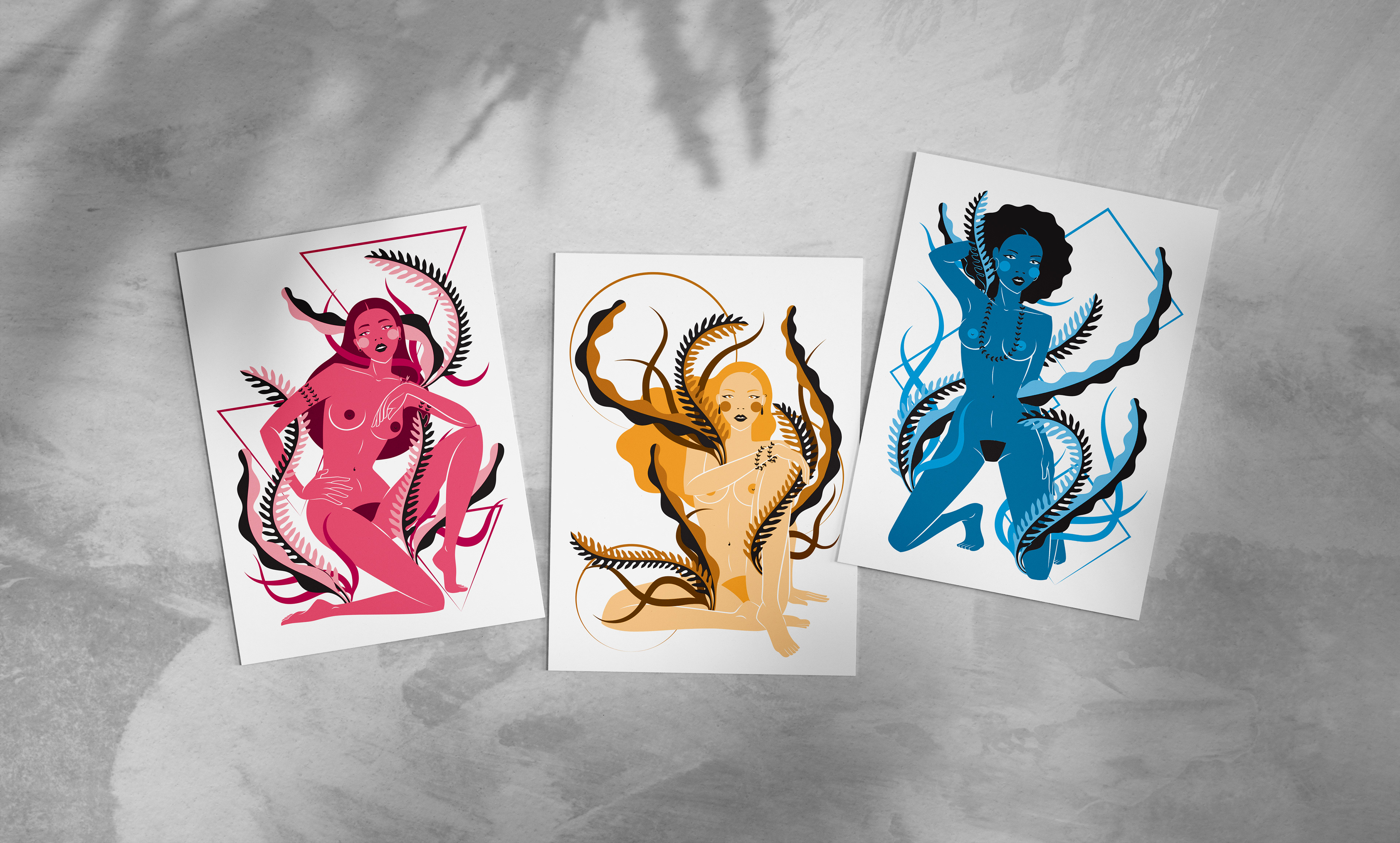 These illustrations are inspired by the 3 main people of the country: Indigenous, Africans, and Europeans. They are represented as powerful Goddesses.