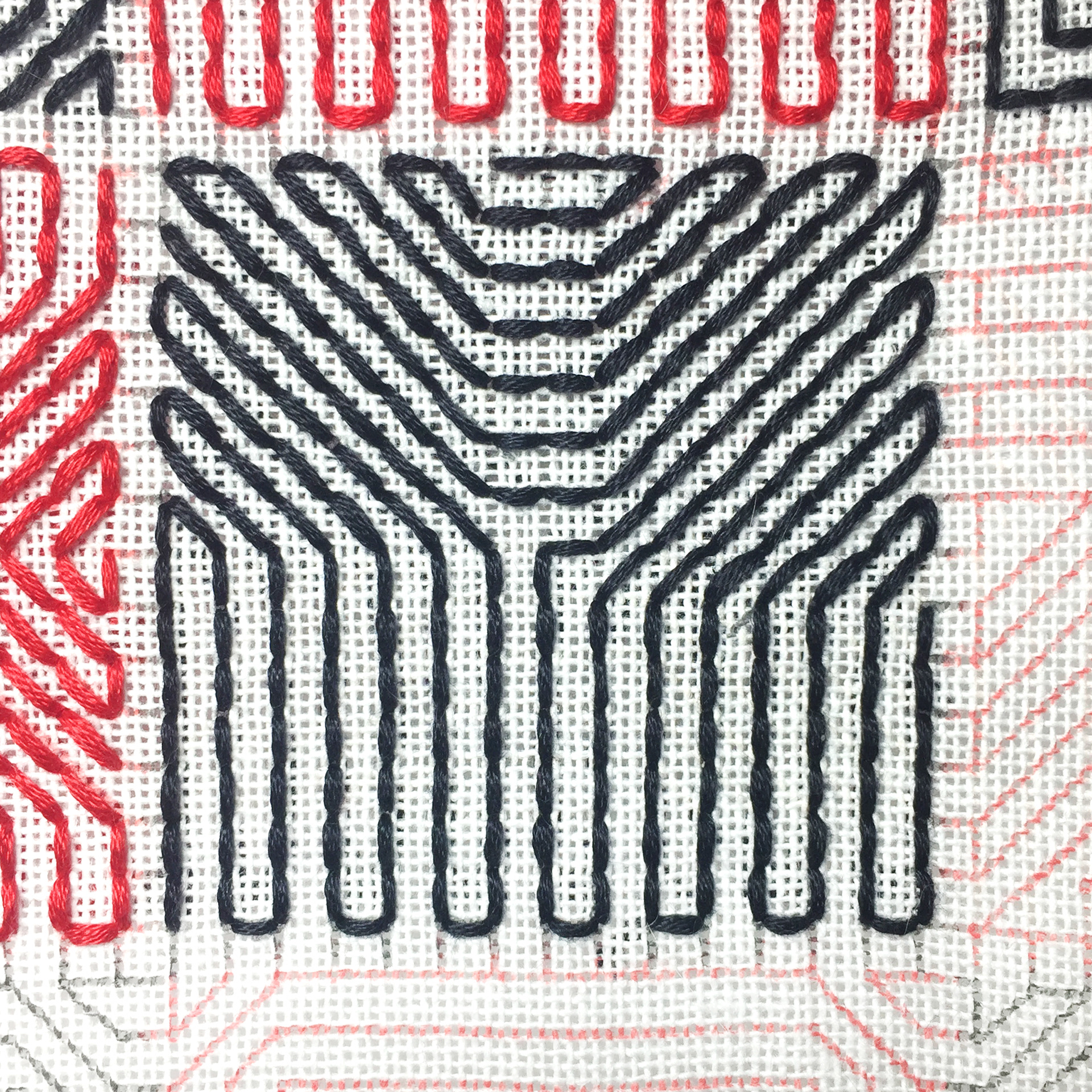 Personal project made after research by Brazilian Indian Tribes. I created this embroidery alphabet inspired by their body paintings, basketry, and crafts, that have a strong geometric theme made from lines creating intricate patterns. I used a rustic fabric as a reminder of their art of basketry and the colors red and black representing their mostly used natural pigments. The final result was similar to a tapestry with a pattern made from letters and numbers.
